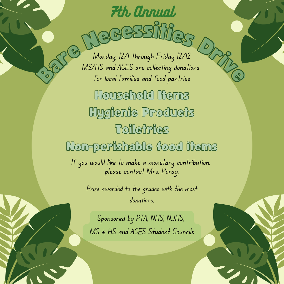 Bring in your Bare Necessities donations tomorrow - Tuesday, December 2nd to earn DOUBLE POINTS!!!